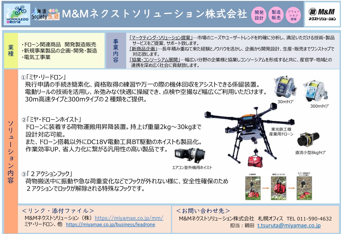北海道経済部AI・DX推進局DX推進課さまが運営する「北海道ドローンワンストップ窓口」の企業ソリューション提案サイトに当社の事業内容とドローン関連商品を紹介させて頂きました。今後もM&Mの認知度UPと道内でのドローン利活用拡大に向けて積極的に取り組んで参ります。 札幌オフィス