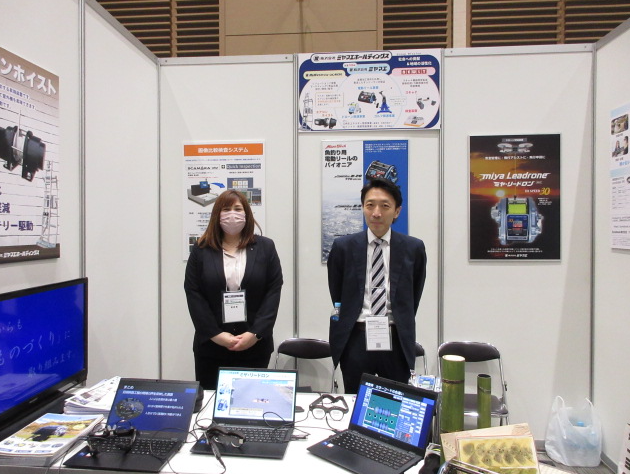 宮前社長によるミヤマエホールディング事業紹介をはじめ、企業ブースでは、自社製品紹介パネル、リードロンや電動リールの実機を展示。また、企業紹介動画をご紹介。 ニューリーの高精細スキャナーを利用して作成したリアルな畳表や立体的な油絵、和菓子の印刷データ等を手に取られて、その画質の表現力に驚かれるお客様も多くいらっしゃいました。